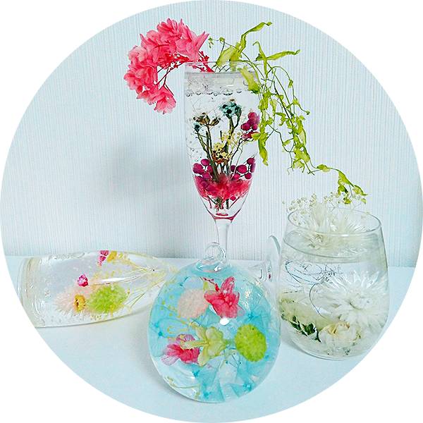 特殊な技法を使ってグラスの中にお花の世界を演出